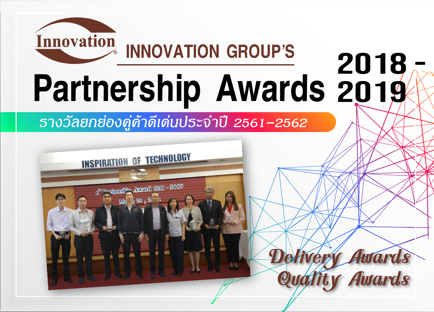 กลุ่มบริษัทอินโนเวชั่น มอบรางวัลยกย่องคู่ค้าดีเด่นประจำปี 2561-2562 ภายในงาน Innovation Group’s Partnership Awards เมื่อวันที่ 23 มีนาคม 2564 ณ อาคารศูนย์วิจัยและฝึกอบรม กลุ่มบริษัทอินโนเวชั่น โดยมี คุณปณิธาน ชุณหสวัสดิกุล ประธานกรรมการบริษัท กลุ่มบริษัทอินโนเวชั่น เป็นประธานในพิธี ทั้งนี้บริษัทมอบรางวัลทั้งสิ้น 6 รางวัล ได้แก่ รางวัลประเภท Delivery Awards จำนวน 3 รางวัล และรางวัลประเภท Quality Awards จำนวน 3 รางวัล