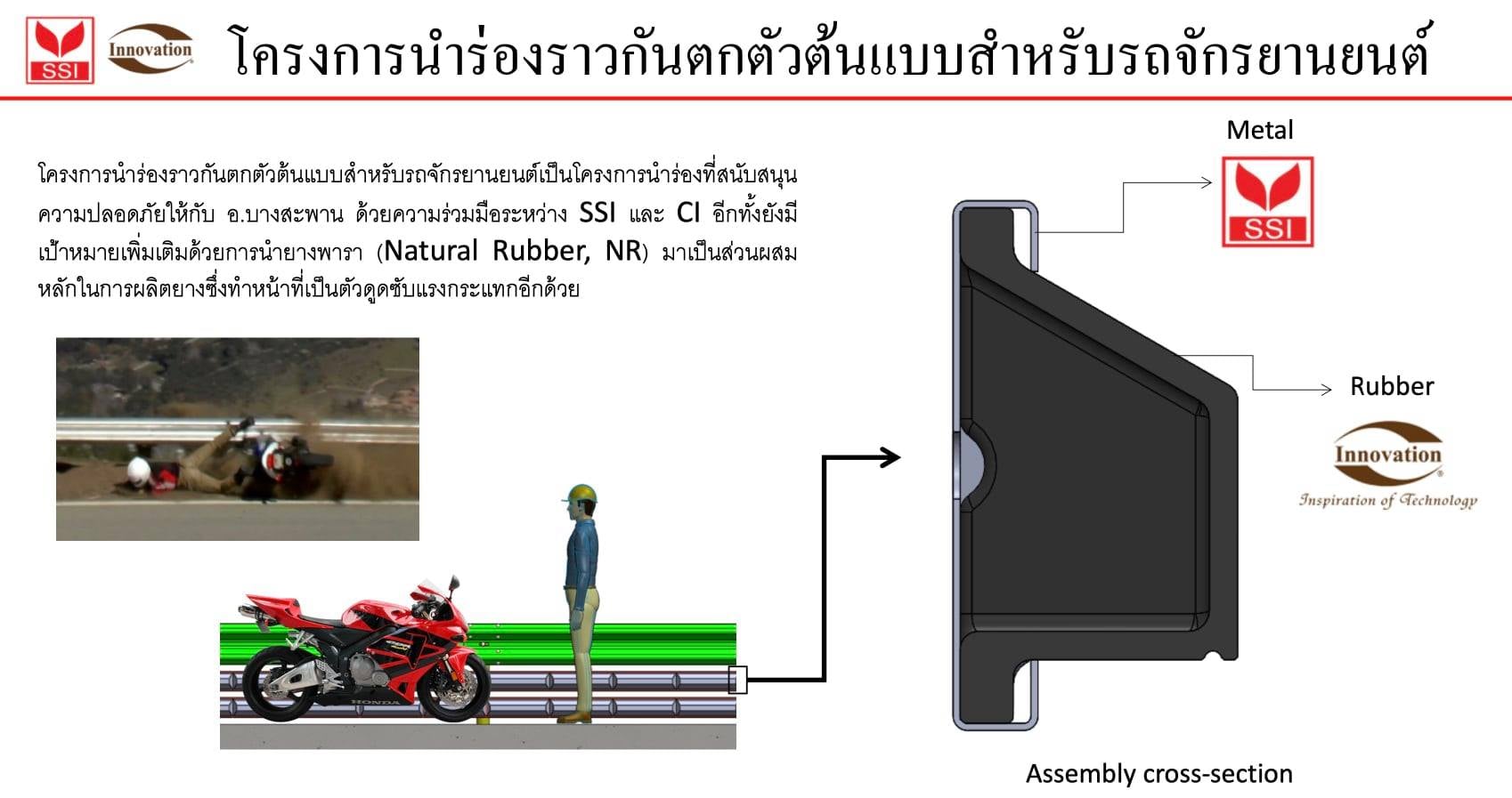 กลุ่มบริษัทอินโนเวชั่น ร่วมกับ บริษัท สหวิริยาสตีลอินดัสตรี จำกัด (มหาชน) หรือ SSI และ บริษัท เวสท์โคสท์ เอ็นจิเนียริ่ง (WCE) ภายใต้ความร่วมมือของกรมทางหลวงชนบท (ทช.) ได้พัฒนาโครงการนำร่องราวกันตกตัวต้นแบบสำหรับรถจักรยานยนต์ เพื่อช่วยลดความสูญเสียจากอุบัติเหตุและอันตรายที่อาจเกิดกับผู้ขับขี่ยวดยาน ตลอดจนช่วยป้องกันรถจักรยานยนต์ที่ลื่นเสียหลักบริเวณทางโค้ง ตกไหล่ทาง โดยราวกันตกดังกล่าวออกแบบให้ใช้เหล็กที่มีความแข็งแรงทนทานร่วมกับยางพาราธรรมชาติที่พัฒนาให้มีคุณสมบัติพิเศษทำให้การ์ดเรลนี้มีความยืดหยุ่นสามารถดูดซับและกระจายแรงกระแทกจากการชนได้อย่างดี ราวกันตกตัวต้นแบบนี้มีความยาว 32 เมตร ติดตั้งบริเวณทางโค้ง บนถนนเลียบชายหาดแม่รำพึง หมายเลข ปข.4056 หน้าองค์การบริหารส่วนตำบลแม่รำพึง อ.บางสะพาน จ.ประจวบคีรีขันธ์