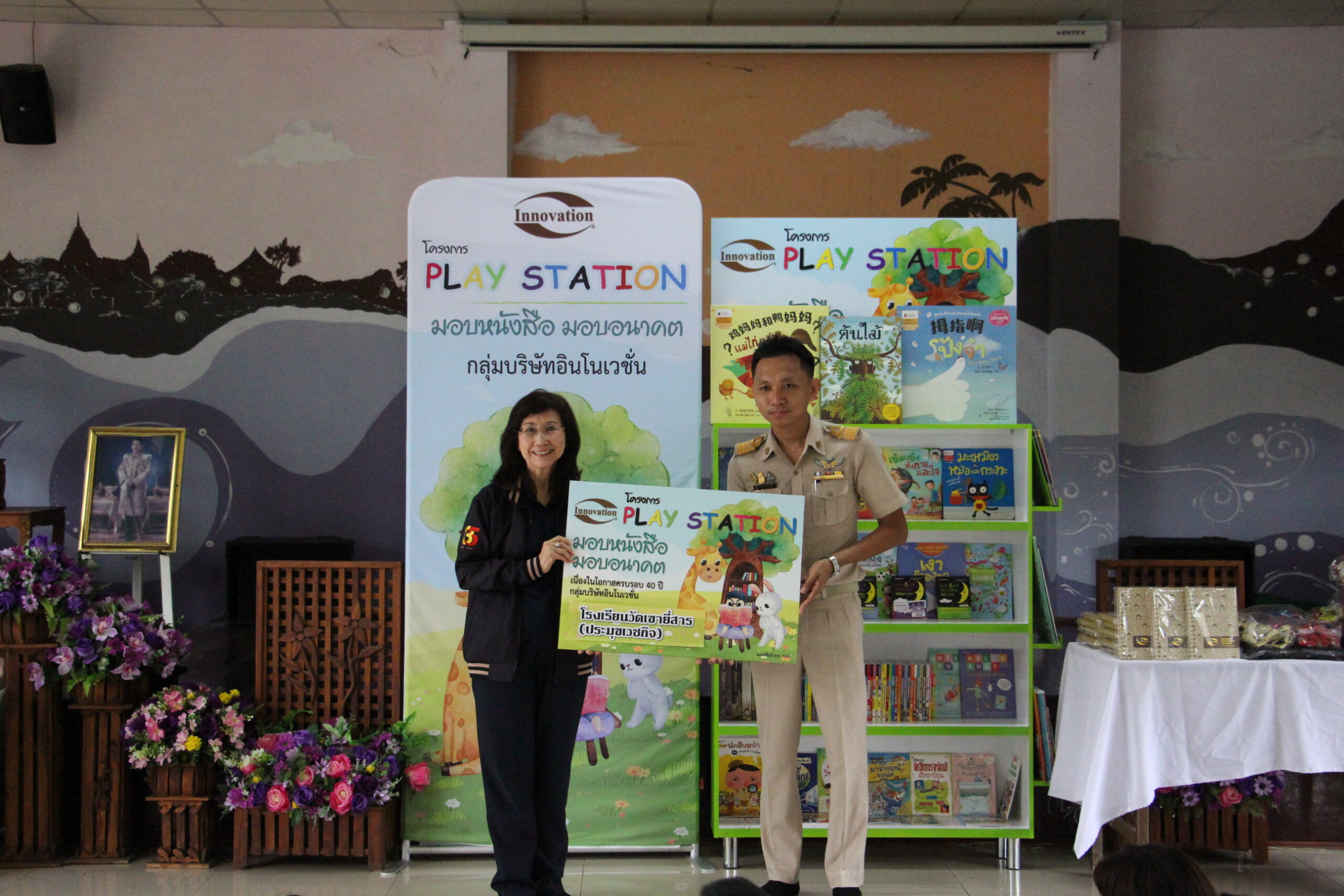 คุณสมศรี ชุณหสวัสดิกุล รองประธานกรรมการอาวุโสฝ่ายบริหาร กลุ่มบริษัทอินโนเวชั่น พร้อมด้วยตัวแทนฝ่ายจัดซื้อ และฝ่ายบัญชีและการเงิน ร่วมจัดกิจกรรมโครงการ Play Station “มอบหนังสือ มอบอนาคต” และทุนสนับสนุนการศึกษา ครั้งที่ 4 จำนวน 4 โรงเรียน ได้แก่ โรงเรียนวัดเขายี่สาร อ.อัมพวา จ.สมุทรสงคราม, โรงเรียนบ้านต้นลำแพน อ.อัมพวา จ.สมุทรสงคราม, โรงเรียนวัดวังมะนาว อ.ปากท่อ จ.ราชบุรี และ โรงเรียนวัดลัด (บางตะบูนวิทยา) อ.บ้านแหลม จ.เพชรบุรี มูลค่ารวมทั้งสิ้น 91,000.- บาท พร้อมกันนี้ ว่าที่ร้อยตรี สมภพ ชวนประสิทธิ์ ผู้อำนวยการรงเรียนวัดเขายี่สารได้จัดชุดการแสดงหุ่นสายโดยนักเรียน “คณะหุ่นสายช่อชะคราม” ซึ่งเป็นวัฒนธรรมไทยโบราณที่หาดูได้ยากในปัจจุบันและสอนวิธีการเชิดหุ่นสายให้กับคณะผู้จัดงานรวมทั้งผู้แทนโรงเรียนที่มาร่วมงานเมื่อวันที่ 24 กรกฎาคม 2566 ณ โรงเรียนวัดเขายี่สาร อ.อัมพวา จ.สมุทรสงคราม