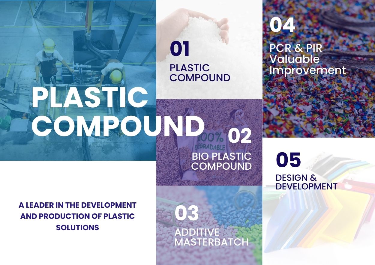 Innovation Polymix Co.,Ltd. are manufactures various types of plastic compounds to serve industrial needs. We provide Olefin, EVA and POE based plastic compounds which can meet the full range of processing requirements for automotive parts, bio plastic compound for Injection, Blown film, Blow molding, Extrusion and Thermoforming, PIR and PCR valuable improvement, including design and development with plastic technical team.