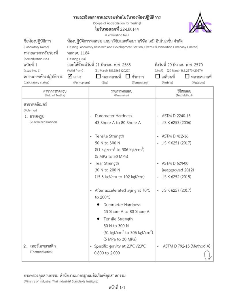 11 Oil resistance  100/hr  Max temperature 150 ๐C (Include Fuel)
